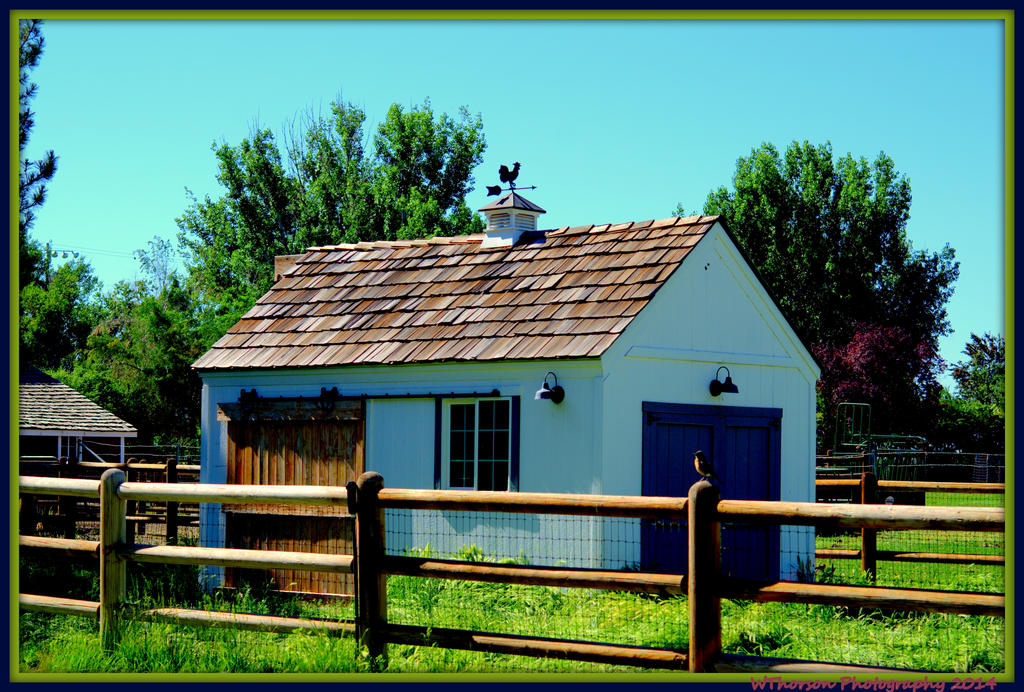 Out Building in Meadow with Robin on Fence.jpg