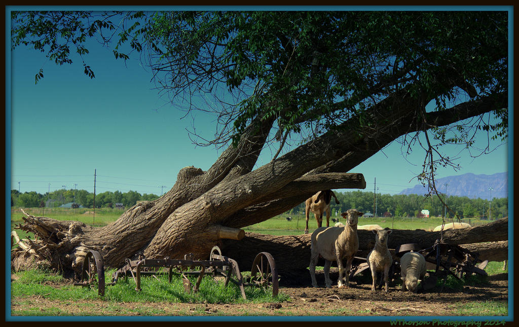 Sheep and a Goat Under a Leaning Tree.jpg