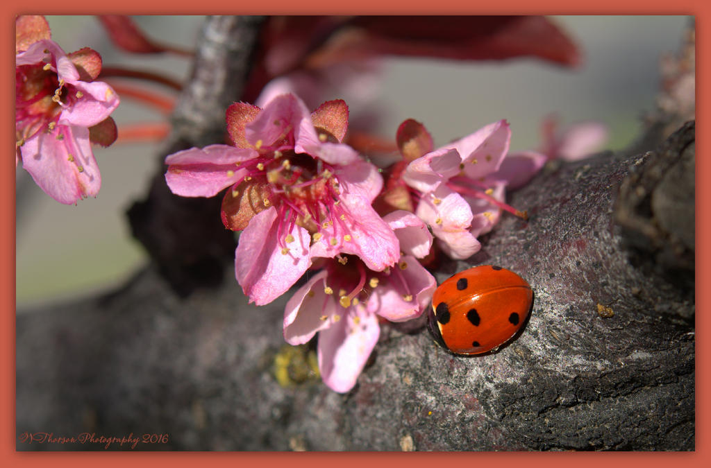 Lady Bug with Flowering Plum Blossoms 4-19-2016.jpg