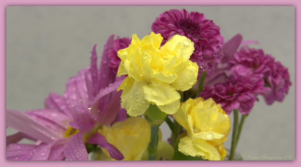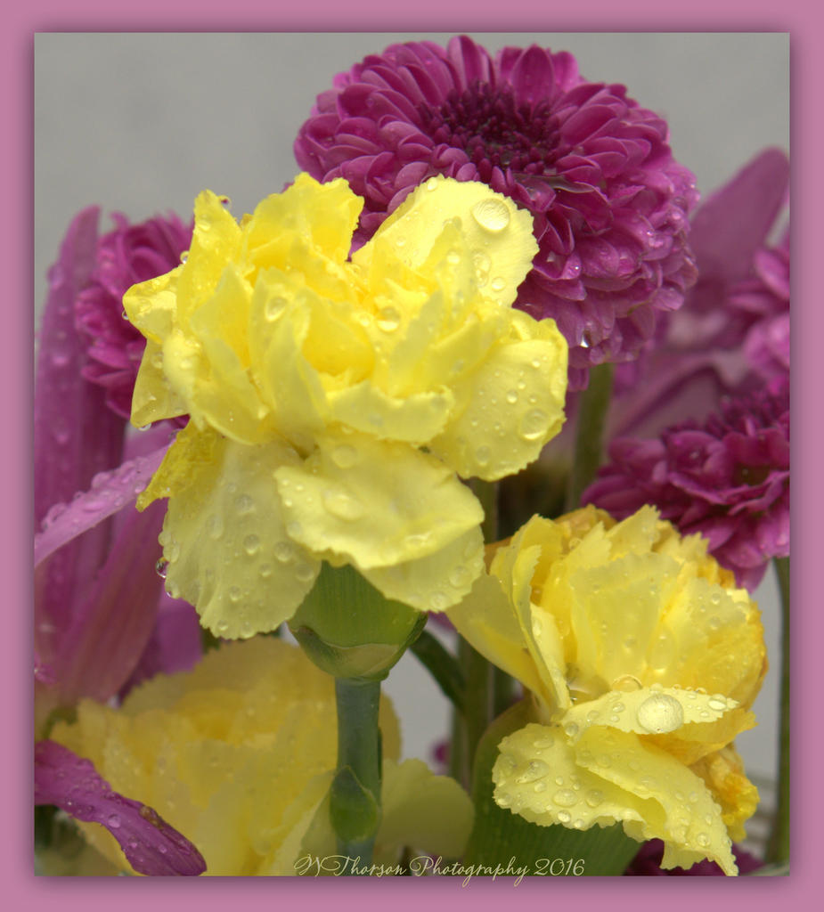 Yellow Carnations and Purple Flowers 4-5-2016.jpg