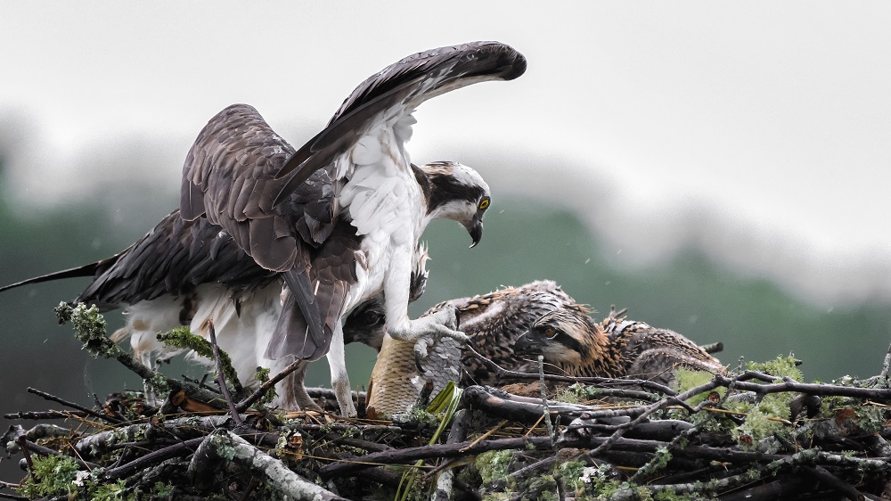 Not much activity around the Osprey's nest Saturday. The chicks are getting almost as big as the adults, but I did not see any of them trying to fly yet. However it was a hot day, so that could be it.