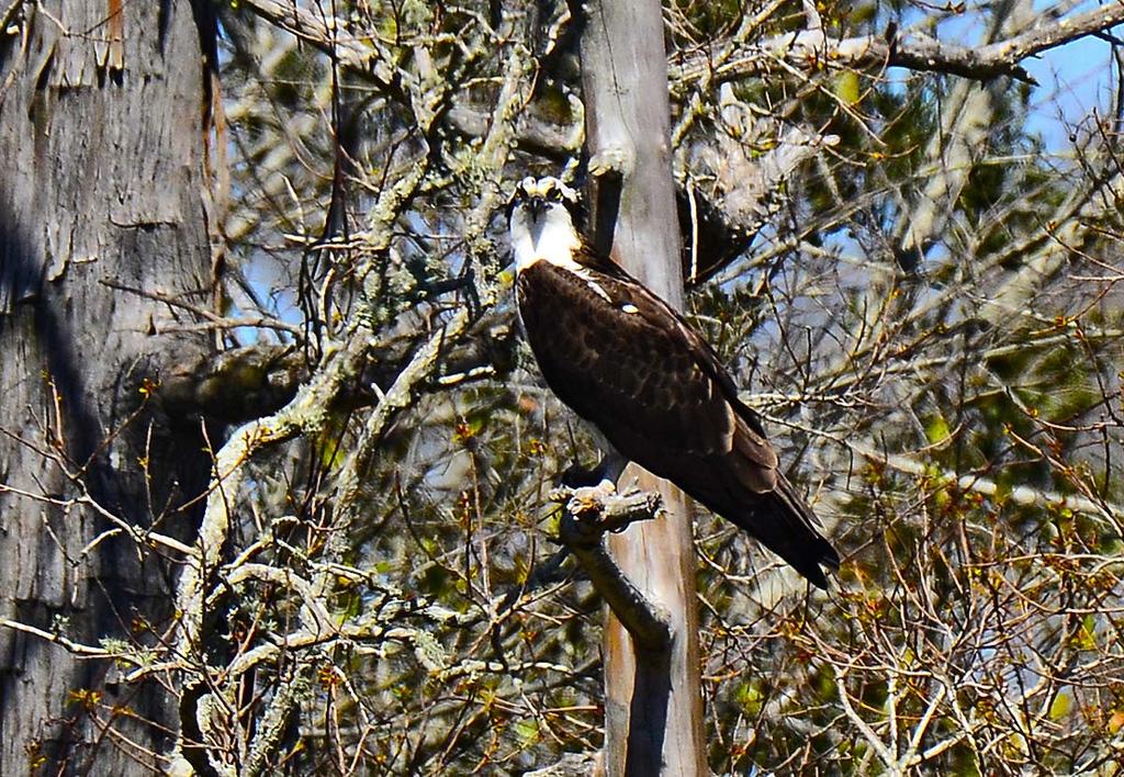 Another shot of the osprey. Marilynne, I just want you to know that I had this wild idea to do my Doctor Dolittle thing and see if I could really talk with these osprey. There was this one having dinner and another one up and to the right in a nest. As soon as I made my sound they answered and every time I would do my osprey call they would answer back. This went on for several minutes and each time I stopped they stopped also. Thia was kinda neat. It was like we were having a conversation. I guess I do have a little DR. Dolittle in me after all. LOL
