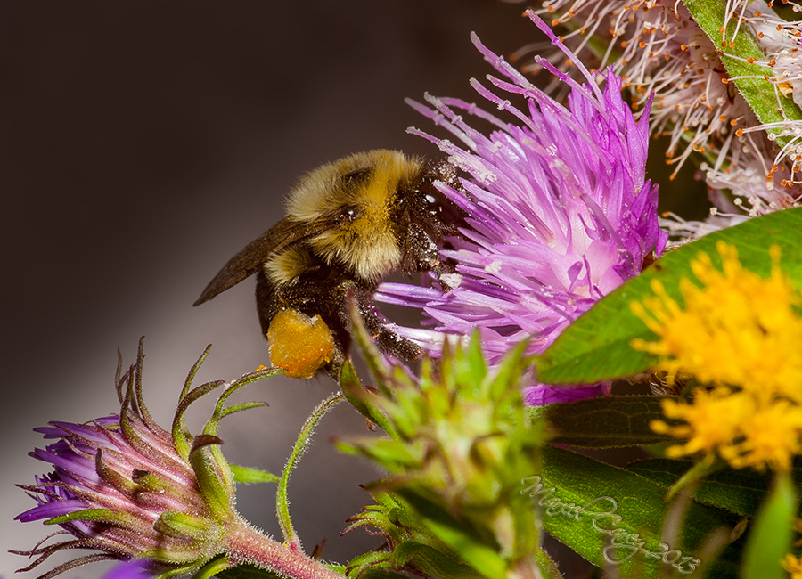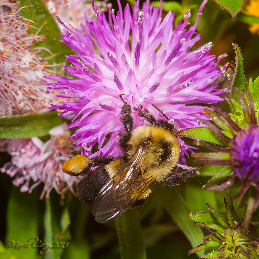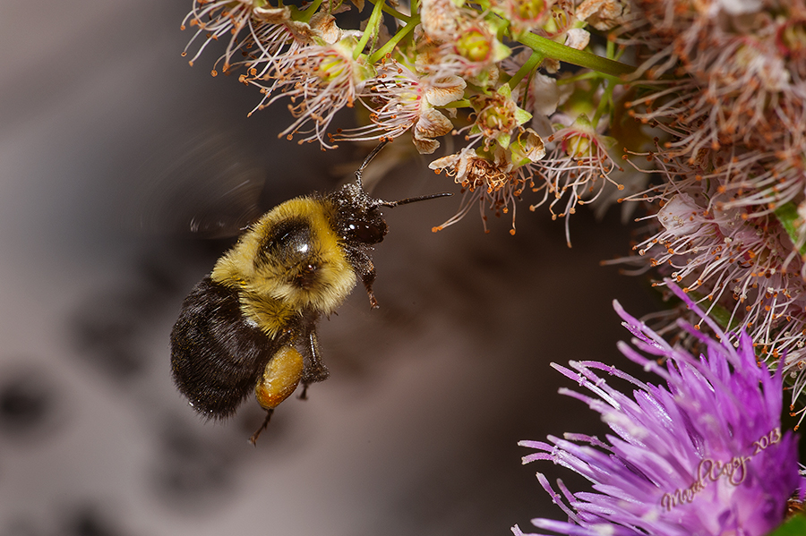 Aug 27th. While having lunch on the back porch, looking at Line's wildflower arrangement, I noticed a bumblebee circling around the bouquet. So I went in and got my trusted D700 with the Sigma 105 macro but, to leave more space between me and the beast I used my Tamron 1.4 Tele-Extender. I was shooting at f16 with the flash and a diffuser. Iso varies.