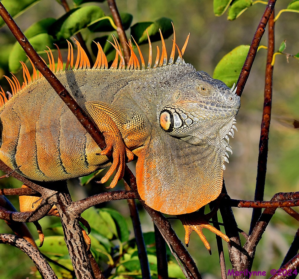 I guess I have never seen a male iguana all gussied up for the ladies. He's very stylish.There are bunches of Iguanas around. Don't know if you know, this is a male in mating colors.