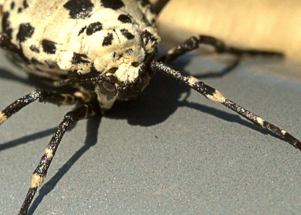 A little Googling suggests maybe a Cottonwood Borer - but the face is not right. Also seems to be a southern bug that feeds on Cottonwood trees - don't think we have any of those around here. Never seen one before