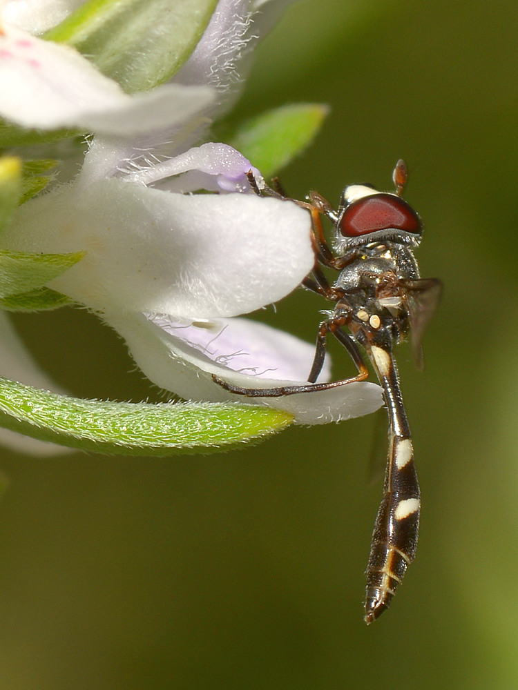 Everyone has come out to play today. I kept seeing this guy, a wasp fly (Dioprosopa clavata) all morning, but it wouldn't settle long enough for a shot -- patience rewarded