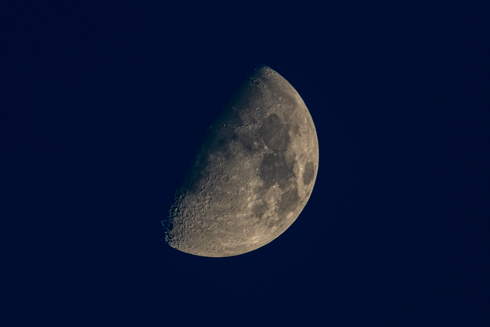 Many of the ones I've taken recently, have been at dusk. This gives the option of a black background or a blue background in post processing. Lightroom grabs the subject mask quite well in these, making it easy to invert and play around with the exposure and saturation of the background. I can also add a second mask of the moon itself and tweak contrast and color. Most of them have a little bit of a warm tint in the moonscape that can be brought out. I find that hint of tan very pleasing in many moon pictures.