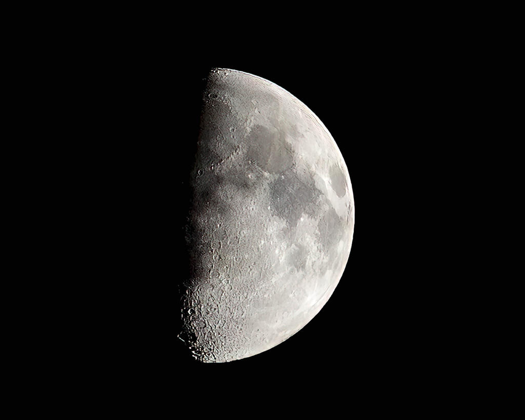 Ok, ya'll have me hooked on moon shots. Problem is, it's difficult to do something different. I managed to do that to a small degree with the previous post. The thin clouds made for some additional interest in the image. The best of the shots was a little overexposed. Thought I work to correct that with this one. It's not bad. The moon itself is better exposed and looks more natural, but it lacks the interest the clouds provided. I do like the phases that have a terminator, as I find the shadows are a compelling feature for me.