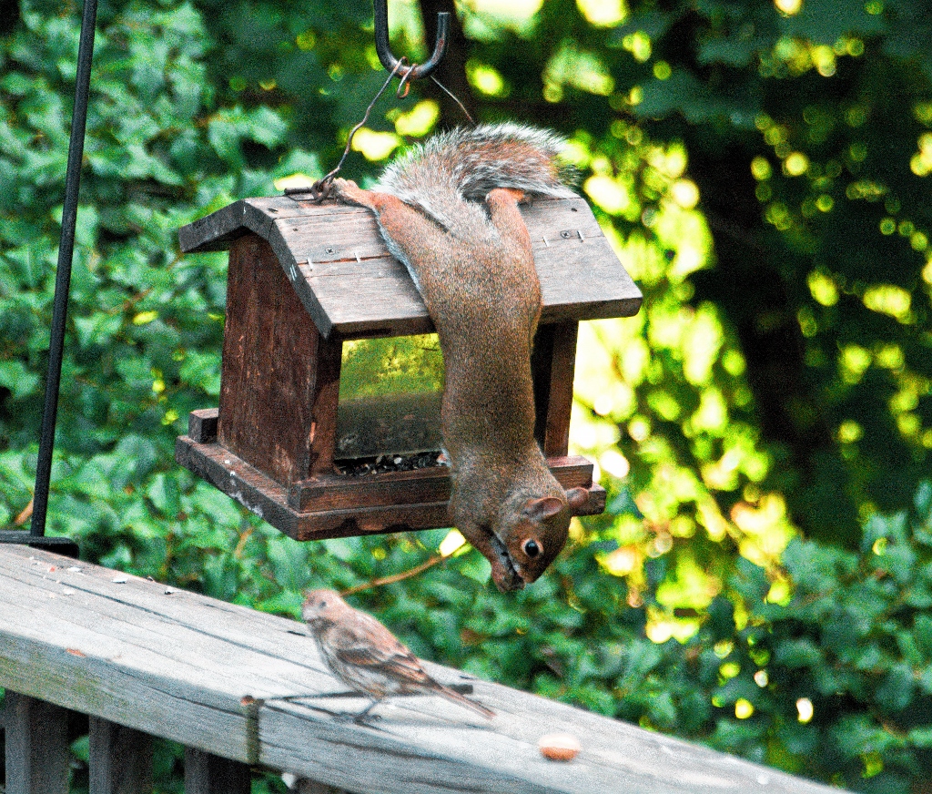 So a lot of you feed the squirrels to get them to come around? Other than teasing my dog, they don't seem to want to stick around once I come out with the camera... :)