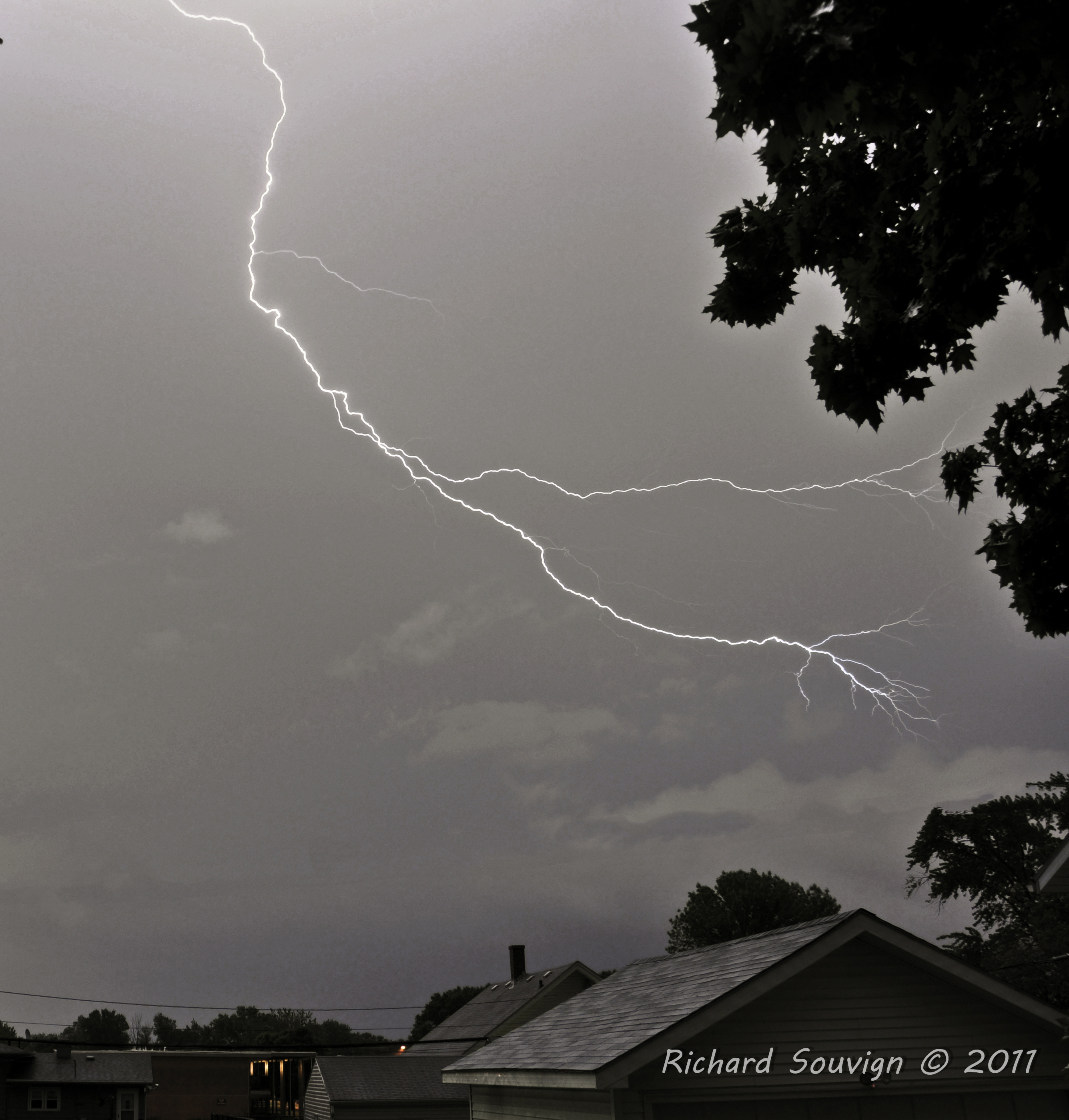 Storm Chasing today in my back yard. This storm was Tornado warned. Don't know if it was the start of a Tornado or not, but something was spinning for about 6 minutes. Then it was gone. I chased it for a while, but nothing never came back. After shooting the Vortex on the way home I blew a hose on the car. So when the second round of storms came in I was stuck shooting from the house for the lightning photo. Hope to have the car fix for tomorrow night, may have a chance to do it again.