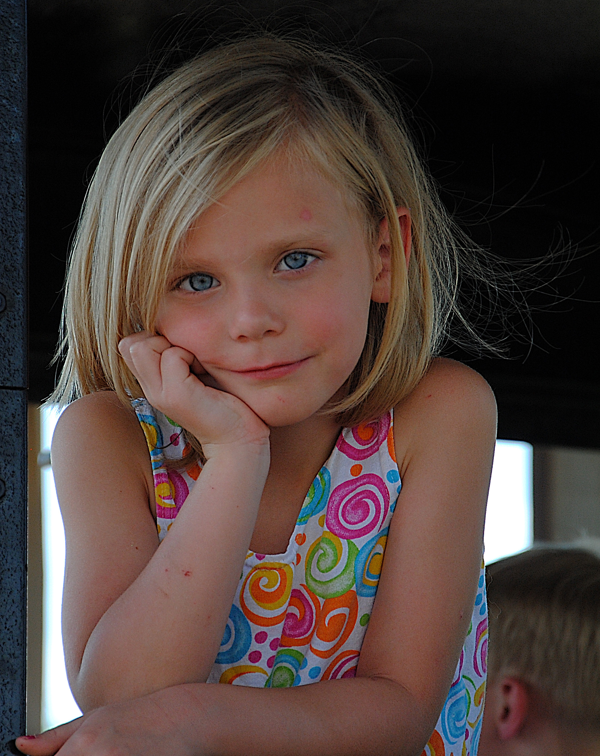 Ella at the train park. She was playing with her brother and sister pretending to watch so the train does not crash