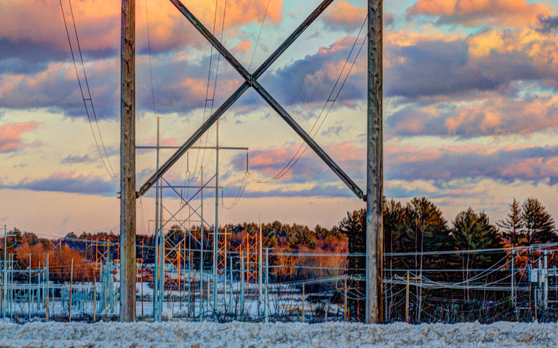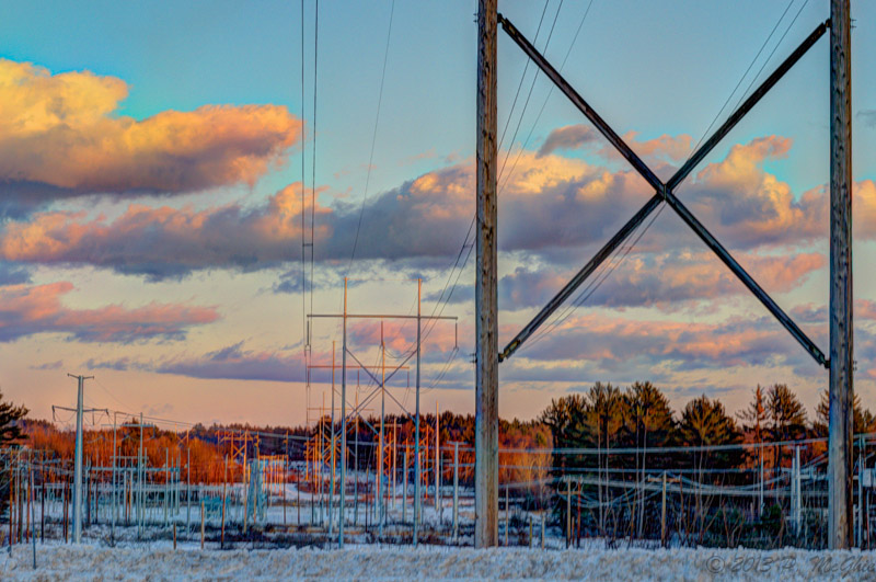 The sun setting behind me casting a glow down the power lines..