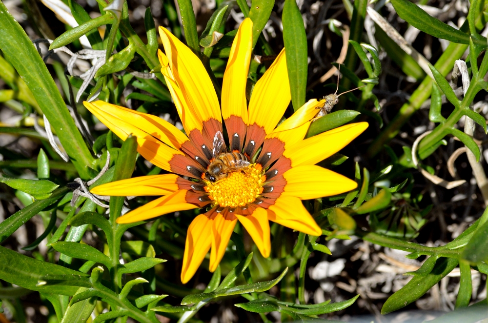 i never noticed the grasshopper until PP @ about 1 o'clock on the flower, munching away at the leaf.