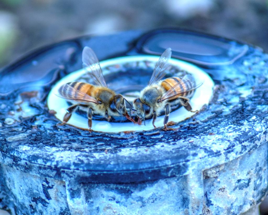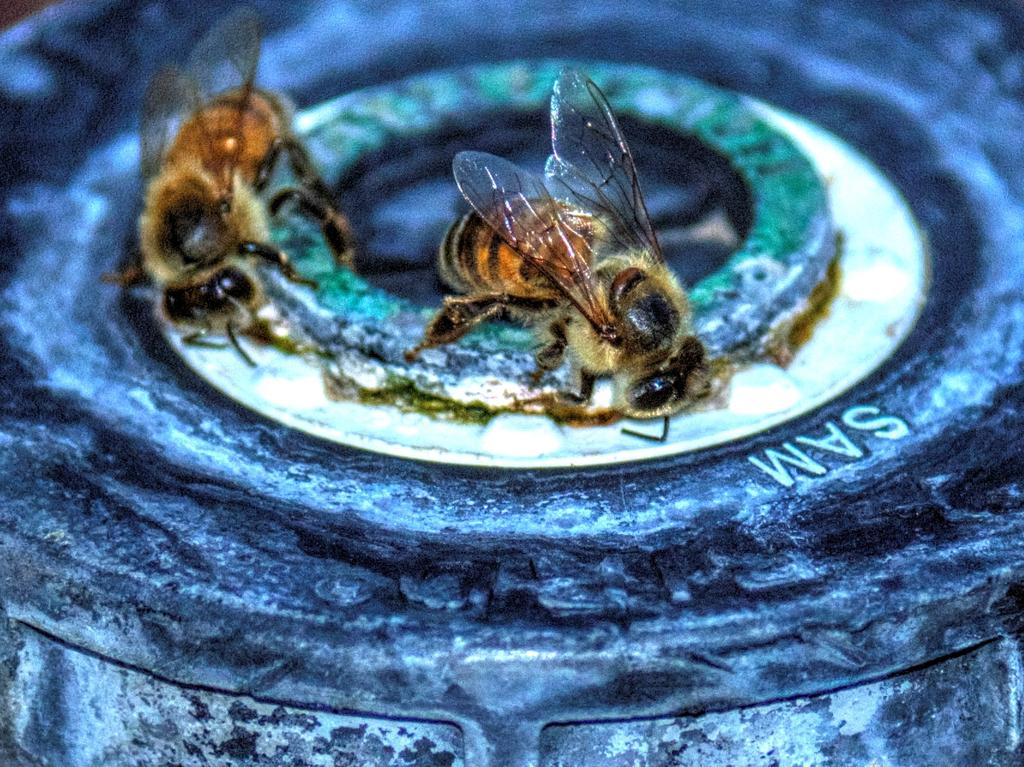 Found the bees drinking from a sprinkler head at the park...