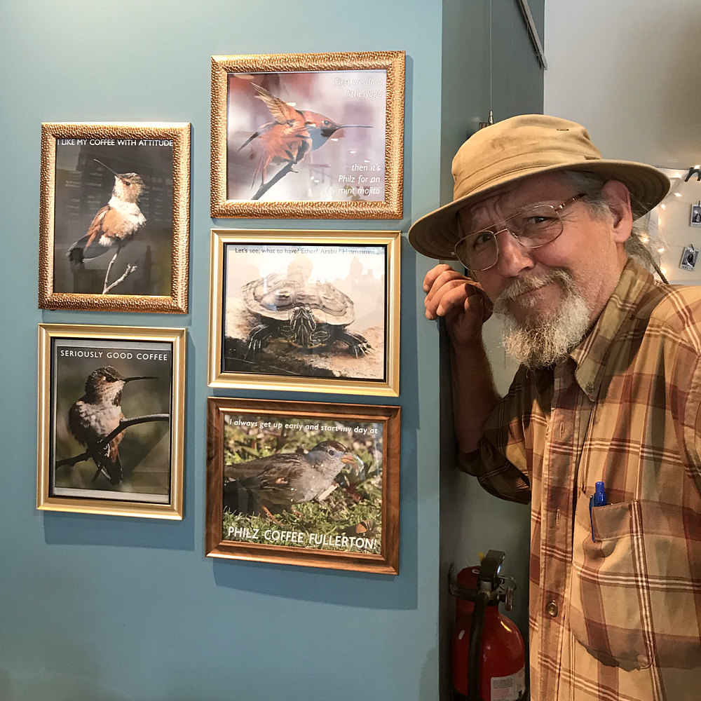 Well, thanks, but it's really sort of an April Fools. There is a coffee bar where I like to stop for a cup before shooting and they kept asking to see pictures, so I do up a captioned shot every once in a while. They got tired of thumb tacking them to the wall, so bought some frames at the local dollar store and swap them out. My daughter thought is was pretty funny, so took the snap of me.